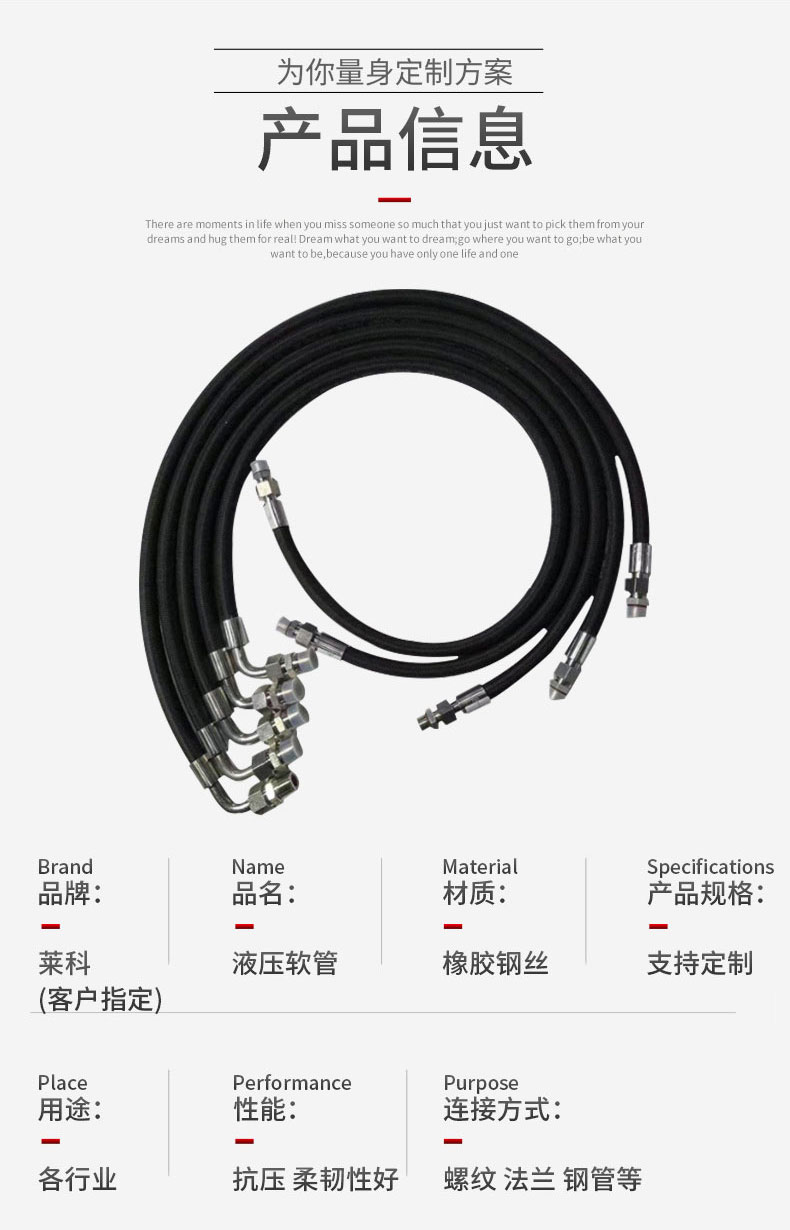 工程機(jī)械液壓軟管膠管鋼絲編織高壓油管總成輸水橡膠軟管液壓油管